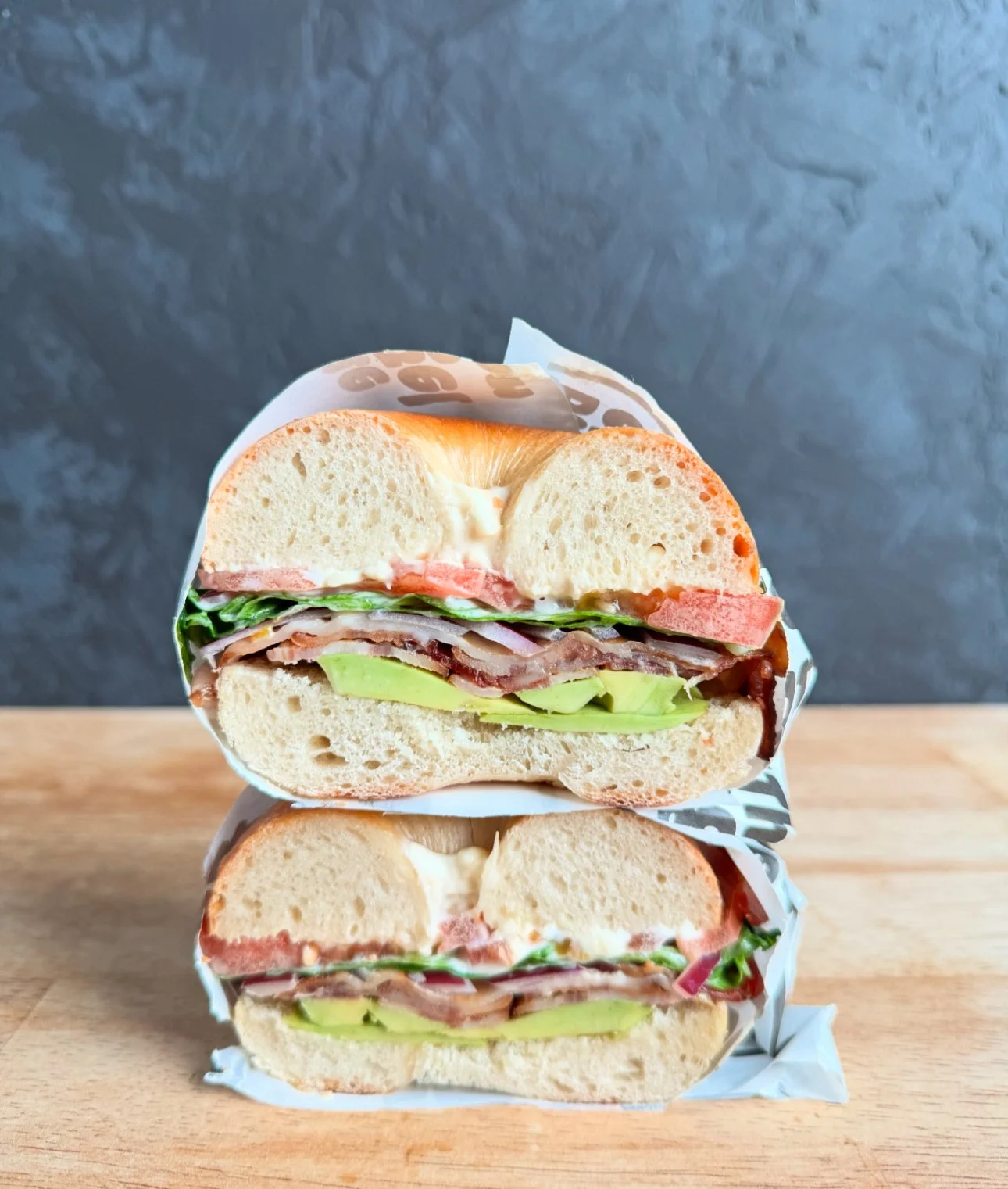 choice of bagel, bacon, lettuce, tomato, sliced onions, sliced avocado & mayo